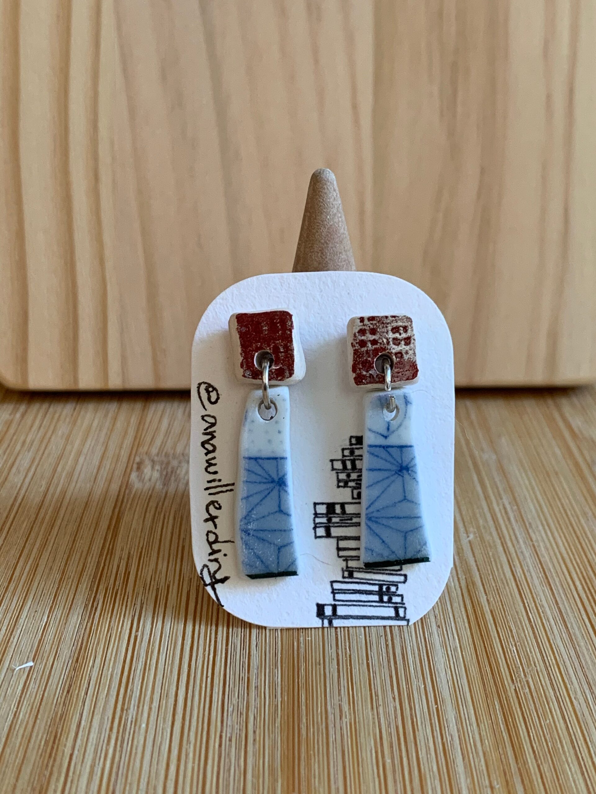 Elevate your personal style with this earring, handcrafted using hand-cut porcelain fragments collected from the streets of Porto.