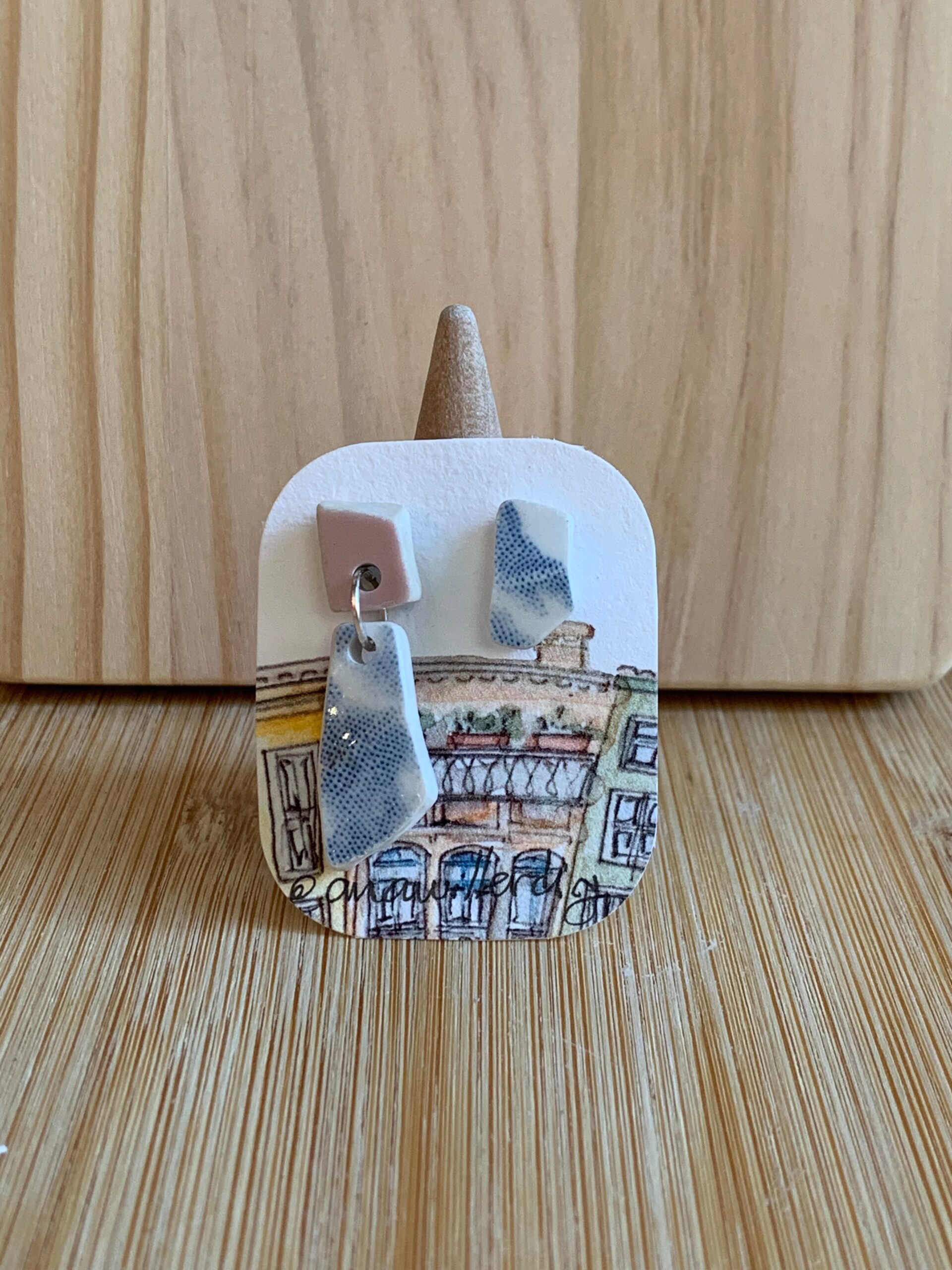 Elevate your personal style with this earring, handcrafted using hand-cut porcelain fragments collected from the streets of Porto.